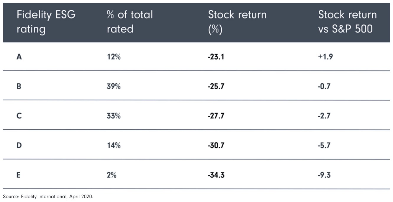 „Zjistili jsme, že právě v tomto turbulentním období existovala silná pozitivní korelace mezi relativním výkonem společnosti na trhu a hodnocením udržitelnosti. V průměru znamenala jedna úroveň ratingu v tomto volatilním období 2,8procentního bodu výkonu akcií," dodává Ned Salter, ředitel výzkumu Fidelity International.