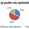 Zrekonstruované byty tak preferuje 52 % respondentů, novostavba je ideální pro 31 % a jen 17 % respondentů chce byt před rekonstrukcí. „Nerekonstruované byty jsou levnější, nesou s sebou ale riziko správně provedené rekonstrukce," doplňuje Miloslav Lafek.