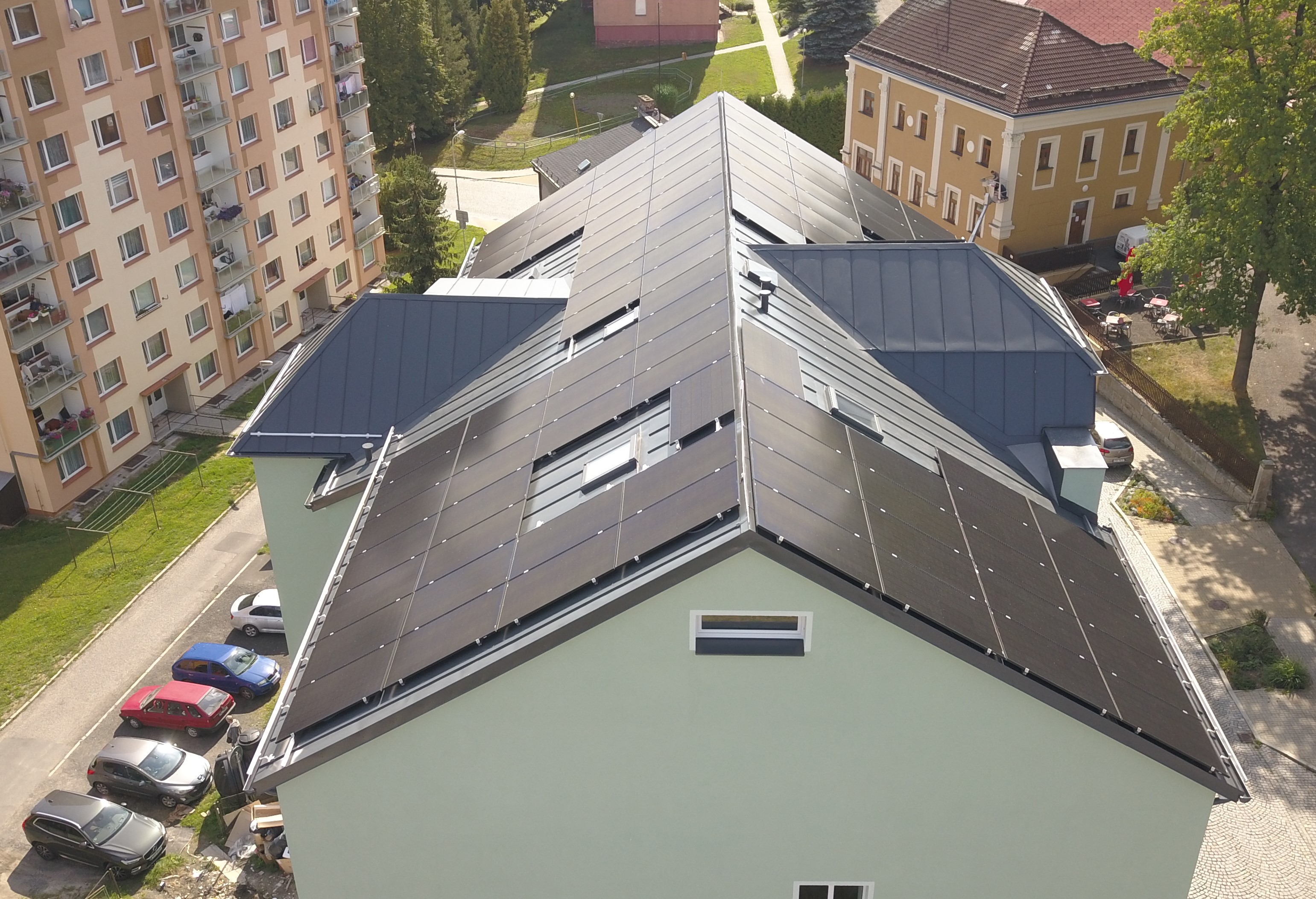 Současně je třeba řešit administrativu – proces získání dotace, projektovou dokumentaci, požární bezpečnost, statiku, souhlas k odpojením od CZT a stavební povolení. Proto je zásadní, aby si SVJ nebo družstvo zvolilo firmu, která nabízí řešení na klíč, zvládne celý proces interně a má zkušenosti s bytovými domy a podobnými projekty. Ideální je, pokud se zabývá instalací tepelných čerpadel a fotovoltaiky (či jejich kombinace) bez nutnosti zajišťování subdodavatelů – dochází tak k lepší koordinaci, odpovědnosti a řešení servisu v rámci celého projektu.