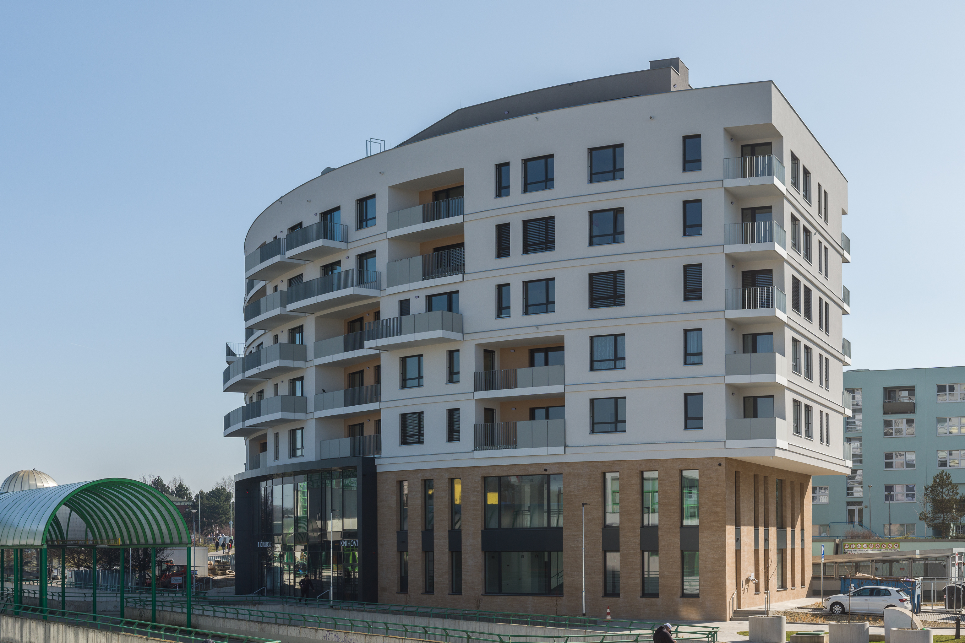 O výstavbu budovy se na základě výběrového řízení postarala společnost Geosan Group. „Celý projekt vznikl systémem Design & Build. Díky výborné spolupráci s investorem a správcem stavby jsme zvládli složitosti se sanací podnože budovy, která byla vybudována v ‚divokých devadesátkách‘ i následnou výstavbu bytů a knihovny ve vysokém standardu provedení,“ uvedl vedoucí projektového týmu Ing. Lukáš Dušta.
