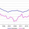 Přesto je těžké polemizovat s názorem, že USA mají lepší výsledky než Německo, ačkoli tomu tak nebylo vždy. Růst reálného HDP USA sice ve dvaceti letech do roku 2019 masivně předstihl růst Německa (52,8 % oproti 31,0 %), ale v přepočtu na obyvatele nebyl rozdíl prakticky žádný (29,1 % oproti 28,4 %). V dlouhodobém horizontu byla tedy ekonomická síla USA oproti Německu z velké části funkcí demografie (růst populace v těchto dvou desetiletích přidal k meziročnímu růstu HDP USA přibližně 0,9 %, ale k růstu Německa pouze 0,1 %). Graf 1 však naznačuje, že od roku 2019 (tj. od doby těsně před začátkem pandemie) došlo k dramatické změně.