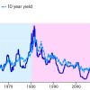 Pokud se zaměříme na sklon výnosové křivky, obrázek níže ukazuje zajímavý trend: od roku 1980 desetileté výnosy obecně převyšují základní úrokové sazby v průměru o 1,15 % až 1,30 %. Tento historický vzorec naznačuje „normální" rozpětí desetiletých výnosů v rozmezí 4,00 % až 5,00 %. Zda se do tohoto rozpětí dostaneme, bude záviset na přesnosti našich předpovědí nebo předpovědí FOMC ohledně neutrální úrokové sazby Fedu. Pokud se bude sazba Fedu pohybovat v souladu s historickým vývojem, mohli bychom být svědky toho, že se desetileté výnosy pohodlně usadí v tomto očekávaném rozmezí.