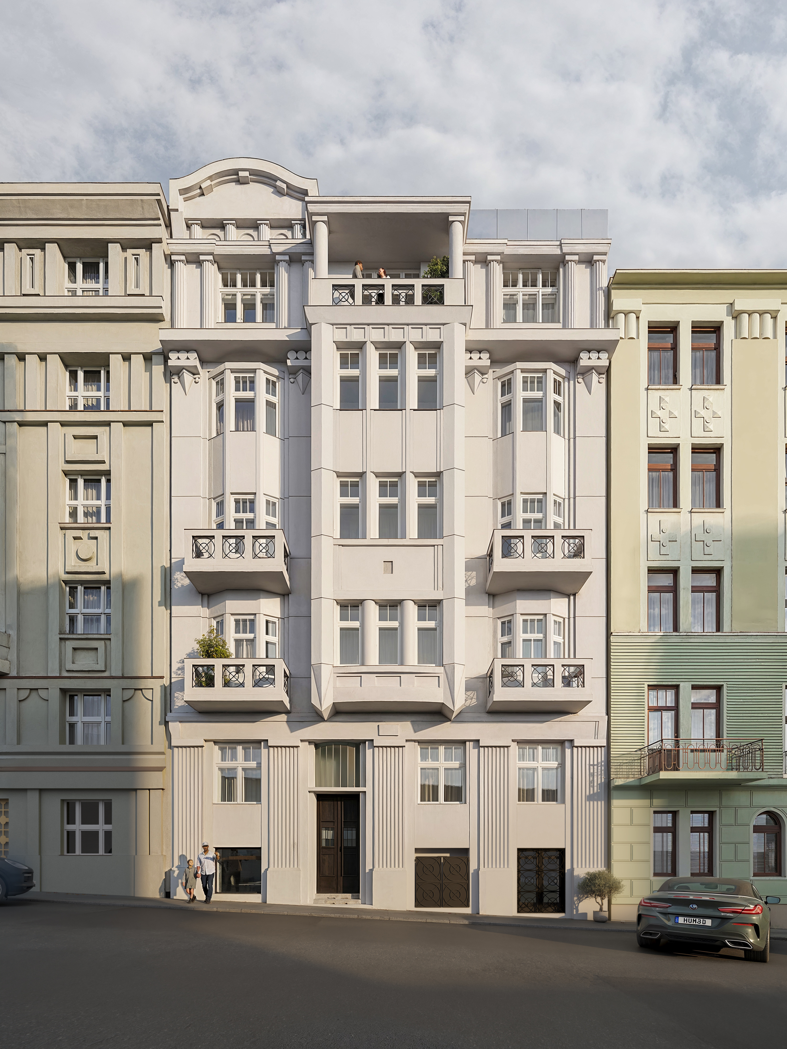 Kubistická stavba si zachová svůj charakteristický výraz – členěnou fasádu, původní detaily ve společných prostorách i špaletová okna. Rekonstrukce doplní dům o nové technické zázemí, moderní výtah a kvalitní interiérové vybavení.