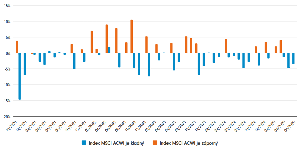 Ačkoliv dosavadní výkonnost není spolehlivým ukazatelem budoucích výnosů, opakovatelné postupy fondu pomohly dosáhnout úspěchů, které jsou obzvláště atraktivní v kontextu požadavků na moderní vyvážené portfolio. Graf 2 nejprve ukazuje, jak tato strategie ve slabších obdobích tendenčně překonává globální akcie. Graf 3 pak ukazuje, že je to dáno její schopností snižovat poklesy v obdobích tržní volatility.