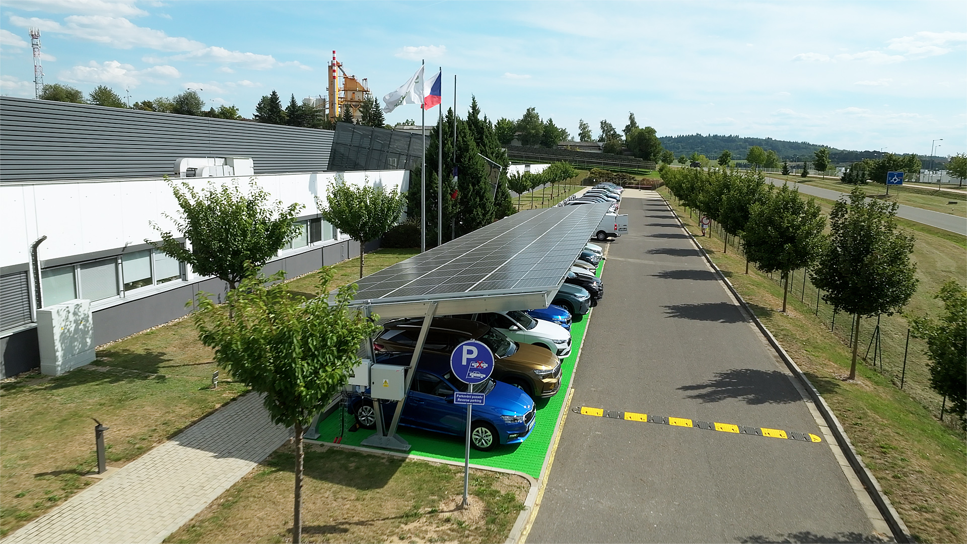 Pozemní fotovoltaická elektrárna o výkonu 547 kWp, dokončená v červnu letošního roku, má předpokládaný výkon 600 MWh ročně, což odpovídá průměrné roční spotřebě asi 200 domácností. V píseckém závodě tak pomůže pokrýt přibližně 28 procent celkové spotřeby elektřiny. Díky tomu se závod vyhne produkci přibližně 267 tun CO₂ ročně, které by jinak vznikly při odběru elektřiny z běžné sítě. Na jaře letošního roku byly v areálu závodu navíc vybudovány i solární carporty – deset přístřešků se solárními panely, které poskytují vozidlům kryté parkování a zároveň vyrábějí elektřinu. Součástí instalace je také bateriové úložiště s kapacitou přes 432 kWh a 16 nabíjecích stanic pro elektromobily, které budou uvedeny do provozu příští rok.