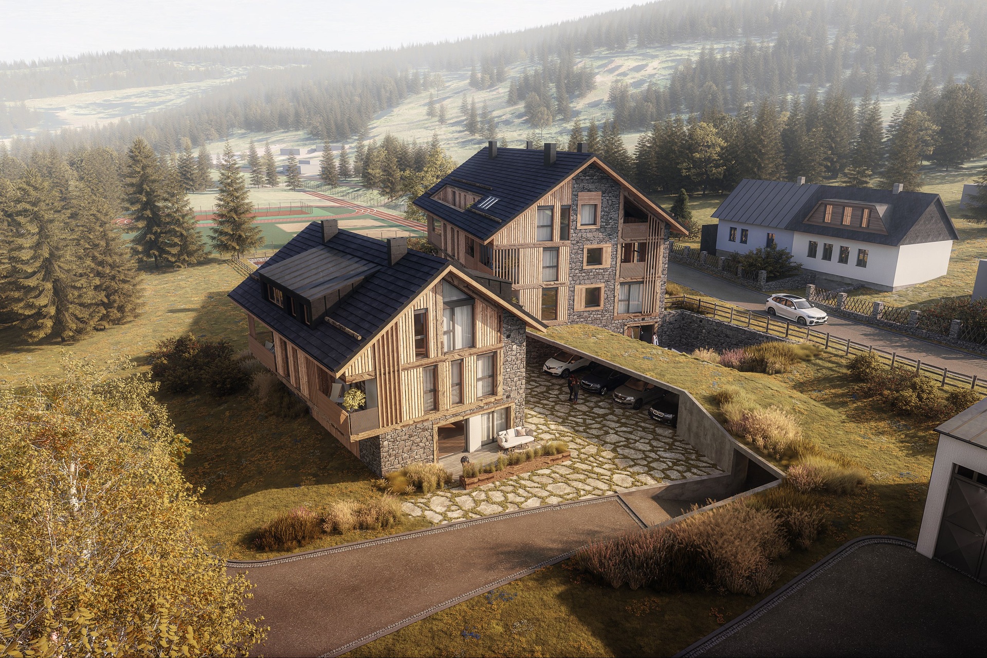 Typickým příkladem autentického horského projektu jsou Apartmány Albeřice v Krkonoších, tedy v další lokalitě s výrazně omezenými možnostmi nové výstavby. Projekt nabízí 11 moderních apartmánů o dispozicích 1+kk až 3+kk, každý s terasou nebo balkonem. Developer navíc klientům nabízí možnost plně vybaveného interiéru od renomovaného designového studia.