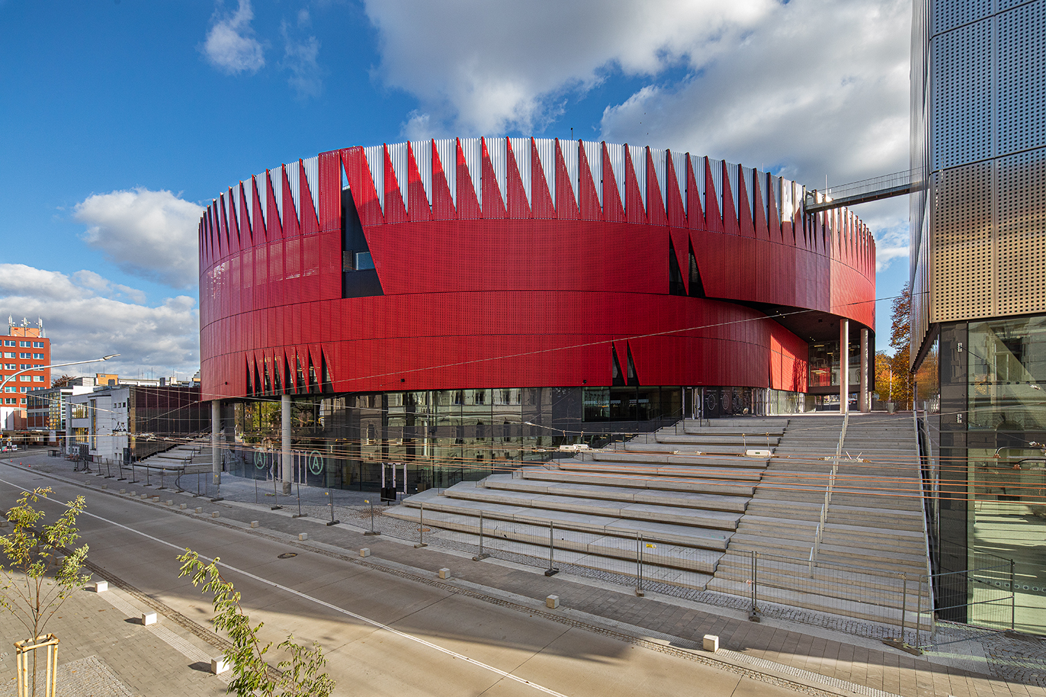 Aréna má výraznou až ikonickou červenou barvu a tvoří spolu s dalšími třemi objekty jeden areál. Zajímavostí je vzdušnost a prostupnost mezi objekty nad zemí, zatímco pod zemí jsou všechny objekty propojeny. V horní části arény tvoří opláštění korunu, která svítí a dokáže tak pomocí barev a světla komunikovat s městem. Areál nabídne plně vybavené zázemí pro sportovní, kulturní či společenské akce. Je zde moderně zařízený hotel, fitness, tělocvična i běžecký ovál na střeše přístupný pro veřejnost. Komfort návštěvníků v aréně zajistí osm gastro provozů, včetně stylové pivnice a kavárny s dětským koutkem. Aréna poskytne zázemí legendárnímu hokejovému klubu HC Dukla Jihlava, který zde odehraje první zápas se Zlínem již 25. října.