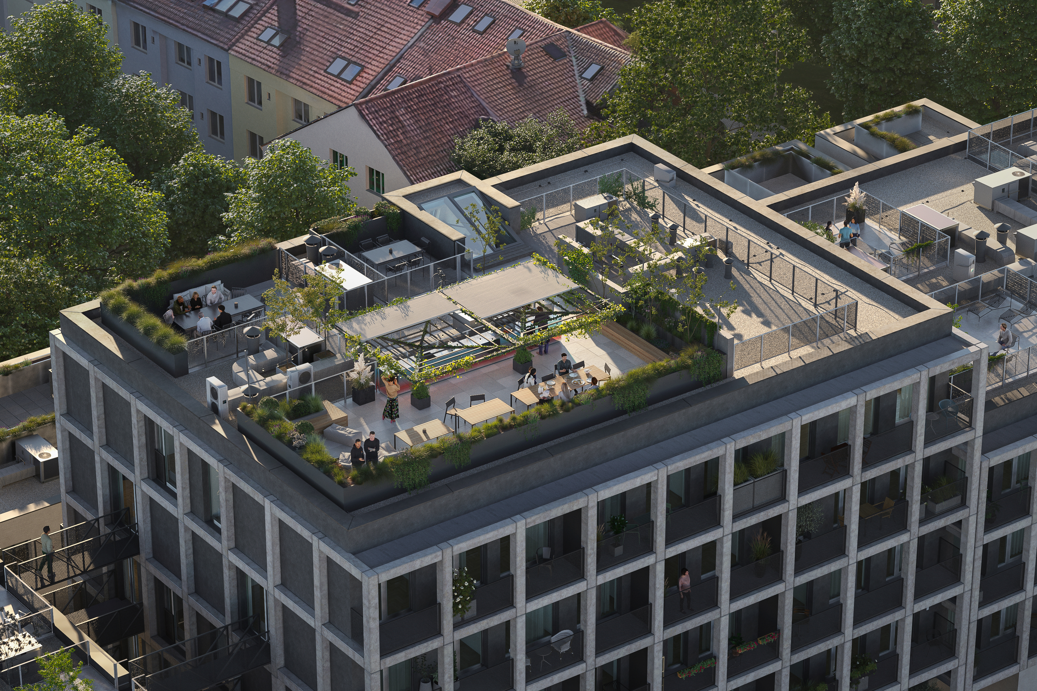 Projekt doplňuje stávající strukturu Vršovic o moderní bydlení s důrazem na kvalitu architektury, dlouhodobou udržitelnost a komfort pro každodenní život.