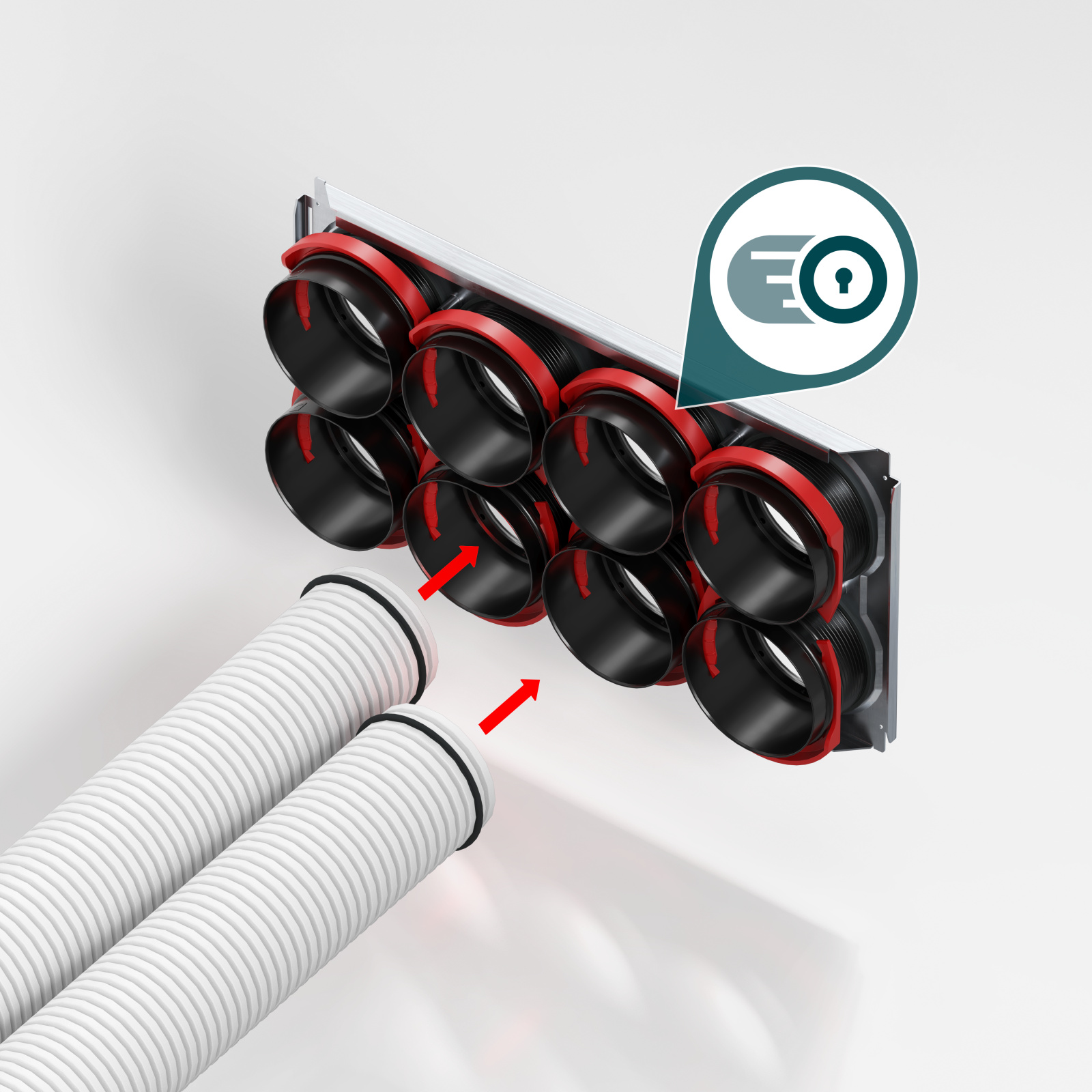 Systém zajišťuje pevné a vzduchotěsné spojení, minimalizuje riziko netěsností a zároveň umožňuje snadné rozpojení při údržbě nebo úpravách instalace. To přispívá ke snížení chybovosti při montáži a urychlení realizačních prací.