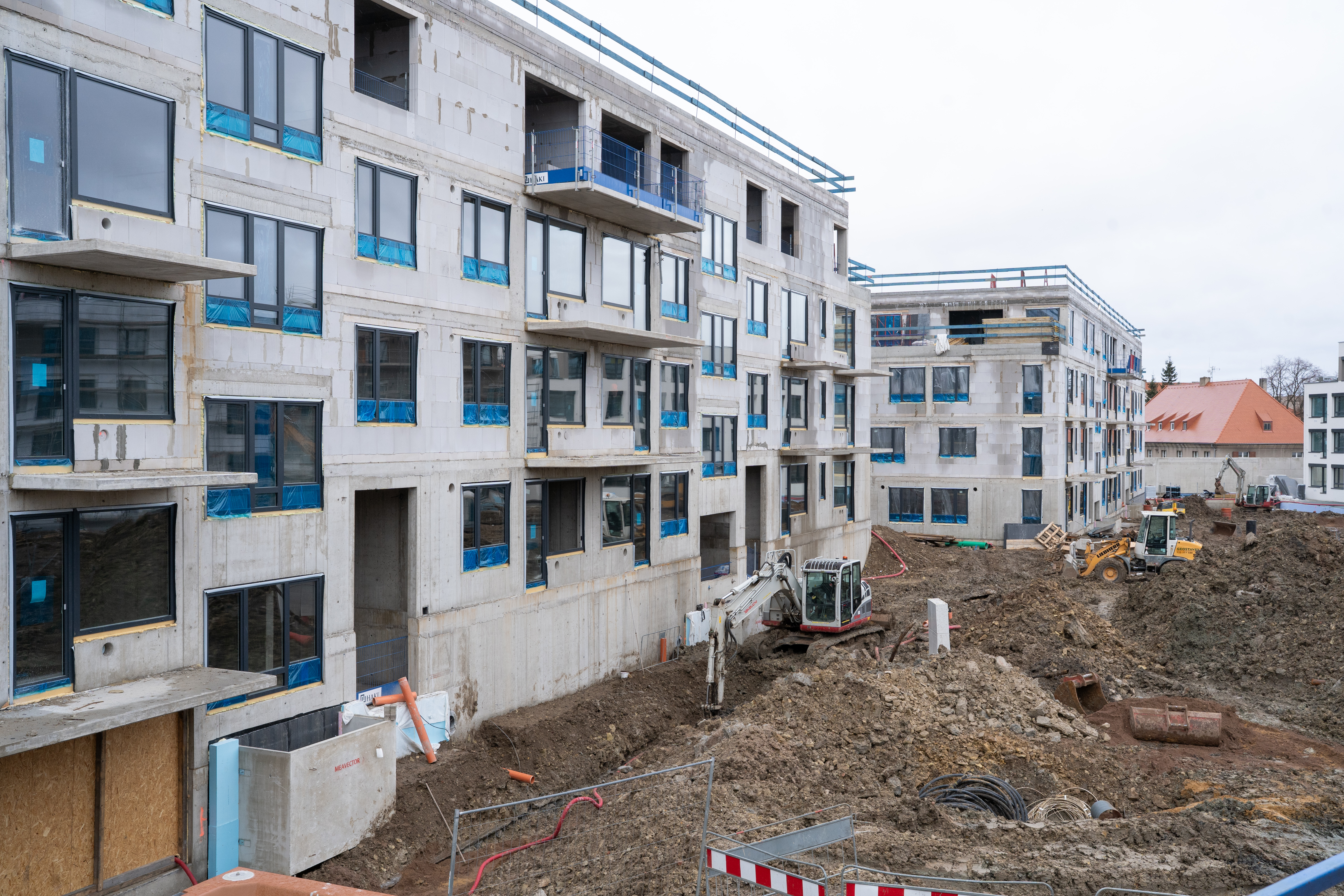 V rámci hrubé stavby byly úspěšně realizovány veškeré nosné konstrukce včetně obvodového zdiva, stropů a střech obou bytových domů. Nyní probíhá osazování oken, kompletace vnitřních rozvodů a realizace inženýrských sítí včetně zemních prací.